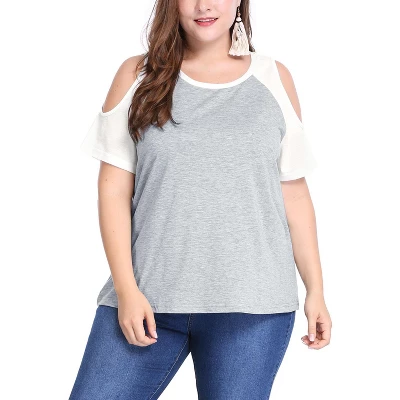 Show off those shoulders with this sporty cold shoulder tee! Short raglan sleeves swoop into a scoop neckline in a contrasting color for a retro ringer style. You will keep it chic on off-duty days wearing this pretty piece.Body size chart shows fitting size, please check your measurements to make sure the item fits before ordering.