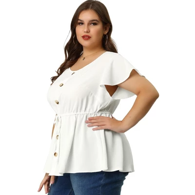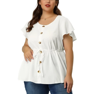 - The fashion design is matched with round neck, button decor, full placket, elastic back, front drawstring waist and bell sleeve to make you more feminine.