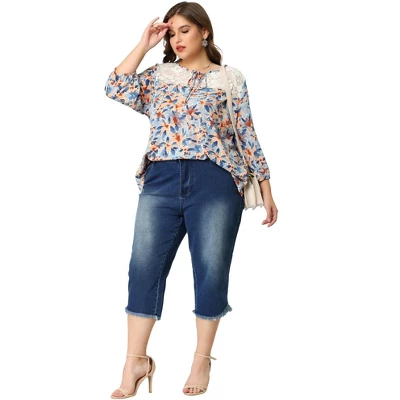 - This round tie-neck blouse is matched with floral printed, lace panel, elastic cuff, and 3/4 sleeves to make you show a more fresh pastoral style
