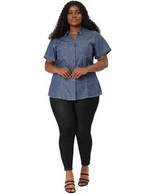 Agnes Orinda Women’s Plus Size Jeans Short Sleeve Chest Pocket Button Down Denim Shirts