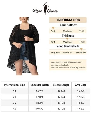 ABOUT US: A plus-size brand inspired by the need of its customers. Hope the clothing can match you on various occasions, by the proper tailoring to show your perfect curve and the comfortable fabrics that enable you a pleasant experience. Crochet Lace Shrug cardigan, perfect for daily casual, office wear, wedding, party, beach, or anywhere. The open front and 3/4 Sleeve design make you look like a blooming flower, to catch everyone’s eyes on you.