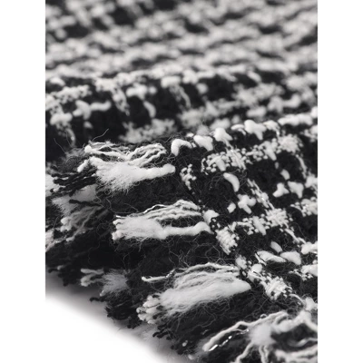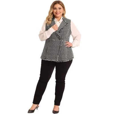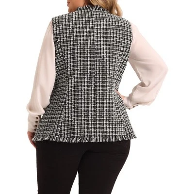 - This vest features a two-row button design and pocket design, paired with a black and white checkered pattern and a fringed hem