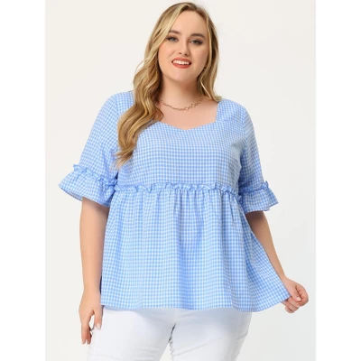 ABOUT US: A fashion clothes plus-size brand inspired by the need of its customers. Keeping up with the design concept of the times, We hope our clothing can match you to various occasions, with the proper tailoring to show your perfect curve and the comfortable fabrics that enable you a pleasant experience. The shape of the top is feminine and the fit is elegant and chic. An exceptionally comfy top, which fits great. A maximum soft and adorable blouse fit with added comfort, Versatile Fit with Two pockets are provided for easy-access storage. Blue plaid pattern and flowy hem to coordinate with every outfit. Plaid pattern babydoll blouse is the perfect summer top for a casual out, dating or vacation.