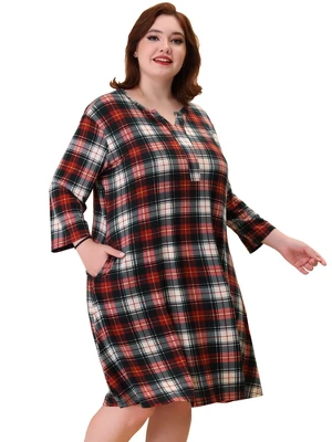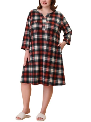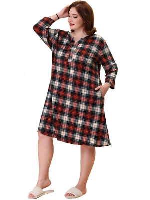 ABOUT US: A fashion clothes plus-size brand inspired by the need of its customers. Keeping up with the design concept of the times, We hope our clothing can match you to various occasions, by the proper tailoring to show your perfect curve and the comfortable fabrics enables you a pleasant experience. Plus Size Nightgown for Women Plaid V Neck Lounge Sleep Dress Nightgowns.