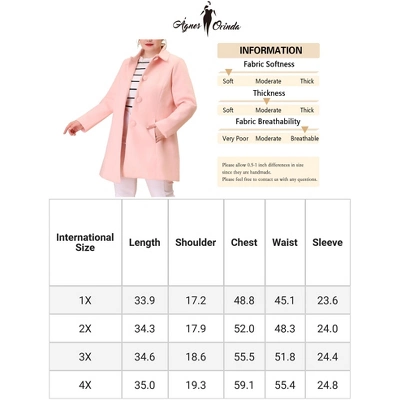 Agnes Orinda is a plus-size brand inspired by the need of its customers. It can suit you in various occasions, show your perfect curves through appropriate tailoring, and the comfortable fabric allows you to enjoy a pleasant experience. The shape of the coat is cute and feminine and the fit is relaxed and easy. Uplift your seasonal wardrobe with this feminine single breasted long coat. The interior of this coat is fully lined to provide warmth and insulation. Whether it’s cold winter or cool autumn, this coat can keep you comfortable and warm. Whether you are a woman with a plump figure or a loose-fitting style, this coat can meet your needs.