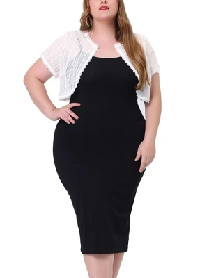 ABOUT US: a plus-size brand inspired by the need of its customers. We hope our clothing can match you on various occasions, with the proper tailoring to show your perfect curve and the comfortable fabrics that enable you to have a pleasant experience. The shape of the cardigan is soft, lightweight, comfy to touch, and easily worn. The floral lace open front bolero cardigan with 3/4 sleeves, crop length, lace allover, and feminine chic style gives you a casual fashion look, it’s a light and soft wearing experience all-matched with a camisole or sleeveless dress.