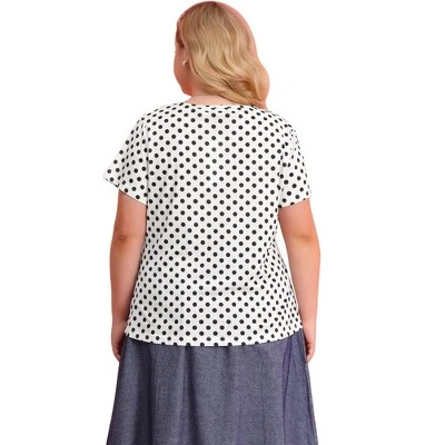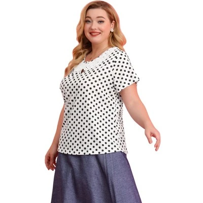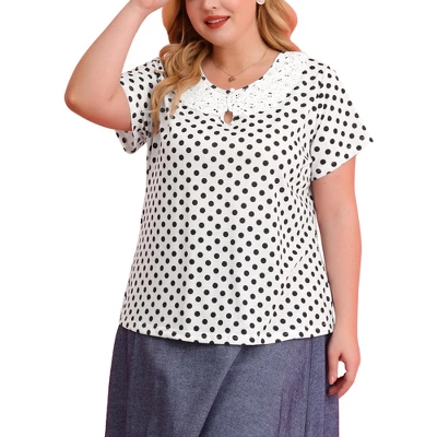 Upgrade your wardrobe with the Plus Size Women’s Polka Dots Top Peter Pan Collar Shirt Short Sleeve Keyhole Blouse. This gorgeous blouse will take you from the office to the weekend in style and comfort. this top offers a comfortable and stretchy fit that allows for ease of movement. The hook closure at the back adds a touch of sophistication to the design. With a lovely scattering of dots, this top adds a playful touch to any outfit. The lace panel collar, keyhole front, and polka dots pattern make it feminine and eye-catching. Whether you wear it to the office or on the weekend, you’ll feel pretty and presentable in this top.
