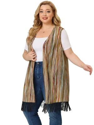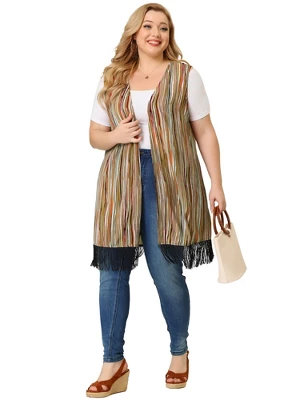 - Features: cardigan for women plus size, lightweight, open front, at waist, sleeveless, tassels hem, stripe