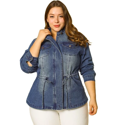 The drawstring denim jacket is a throw-on style that will lend an effortless look to any ensemble. Features front hidden zipper fastenings and a stand collar. It’s cut to a relaxed silhouette featuring a drawstring waist for silhouette enhancement. Mix with both tailored and casual pieces for a vintage outlook. Pair with straight-leg black jeans and ankle boots.