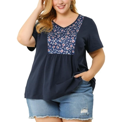 ABOUT US: Agnes Orinda, a plus-size brand inspired by the need of its customers. We hope our clothing can match you into various occasions, by the proper tailoring to show your perfect curve and the comfortable fabrics enables you a pleasant experience. This peplum top is set for casual outlook in a V-neck t shirts designed with a floral print in front of the chest.Framed by an elegant V-neckline, the vibrant floral front color contrast top let us pining for the summer and leaping into spring.