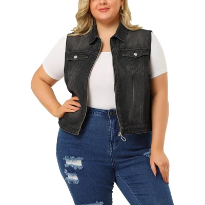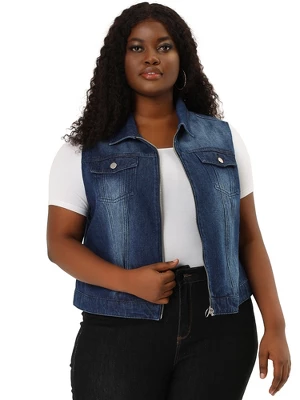 - Jacket vest for women plus, classic denim, sleeveless, regular fit, fashion, full zipper