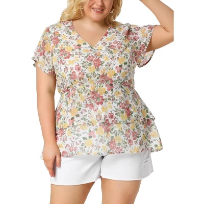 - Showing a more feminine charm design this blouse is matched with a tiered design, floral printed, and ruffle hem