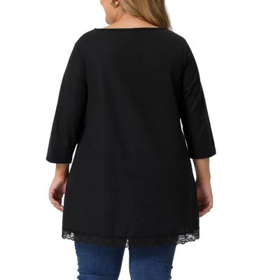 - This waffle top features a simple and generous round neck design, curved hem with lace stitching, and 3/4 Sleeves, making it a loose pullover top