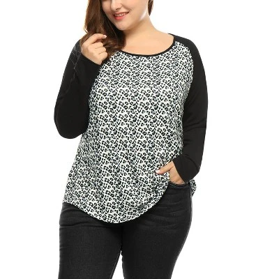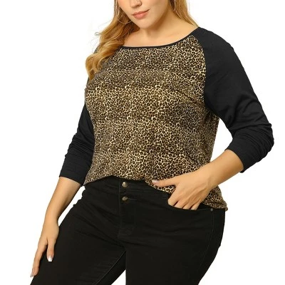 - Scoop Neck, Raglan Sleeves, Leopard Print, Color Contrast, Slightly Round Hem