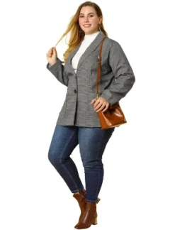 Agnes Orinda Women’s Plus Size Retro Denim Notched Lapel Long Sleeve Classic Washed Crop Jean Jacket